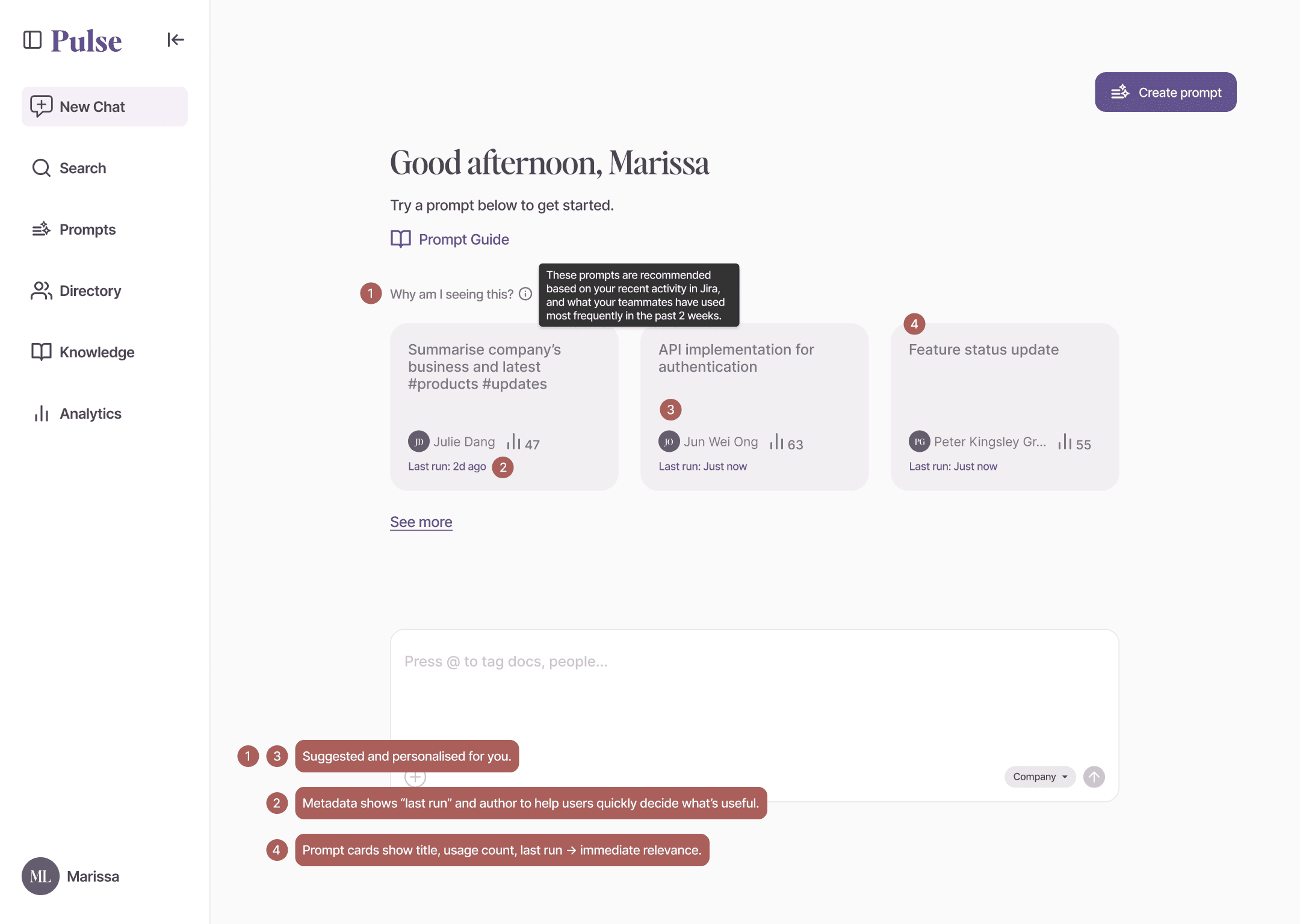 Before Pulse, teams had to deal with scattered docs, constant tool-switching, and messy collaboration. Now, with AI-powered prompts, it’s easier to find what you need, avoid rework, and stay aligned across roles and tools.